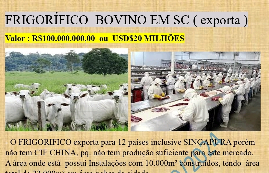 FRIGORÍFICO BOVINO EM SC ( exporta ) Valor : R$100.000.000,00 ou USD$20 MILHÕES
