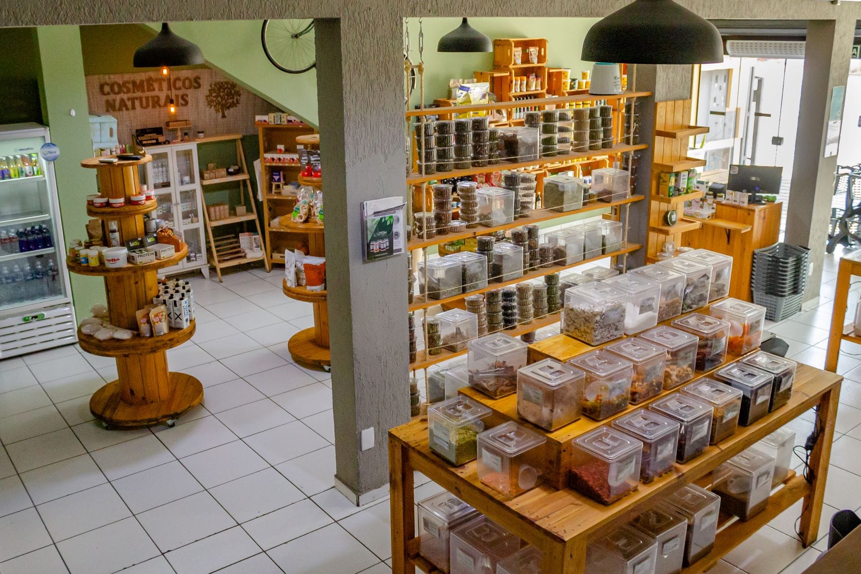 Especializada em alimentação saudável e dietas especiais, conta com uma mercearia sem glúten, sem lactose, sem açúcar, produtos veganos e vegetarianos, fitoterápicos, cosméticos naturais e itens de higiene e limpeza.
