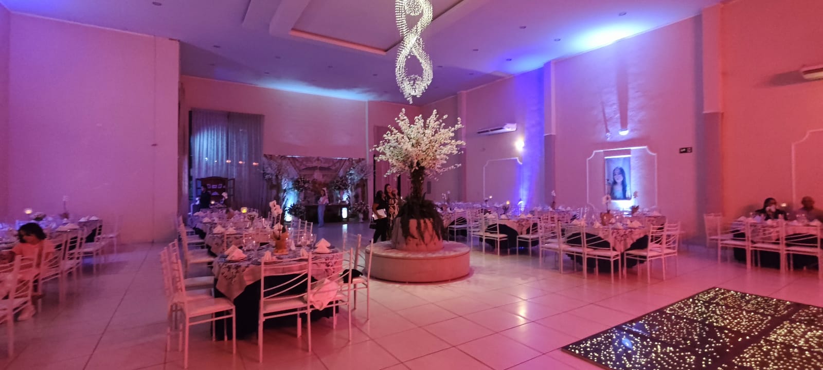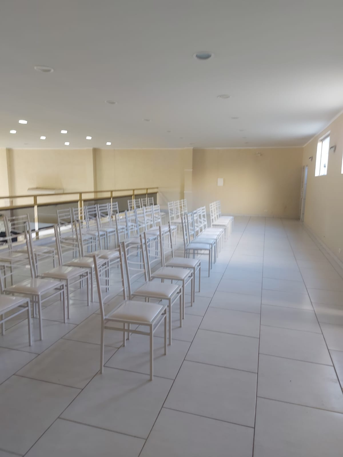 Estrutura nova área de terreno 770,65m com1 lustre de 3 metros (DNA), 04 ar condicionado, área construída 578,52 m, 02 cozinhas, banheiro de funcionário com chuveiro, Banheiro feminino, Banheiro masculino, camarim, área para uma nova construção, instalação pronta para gerador (cabo), Mezanino com 02 banheiros.