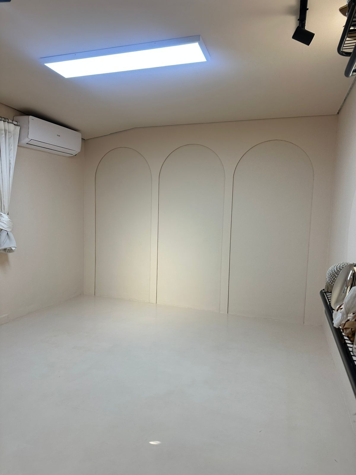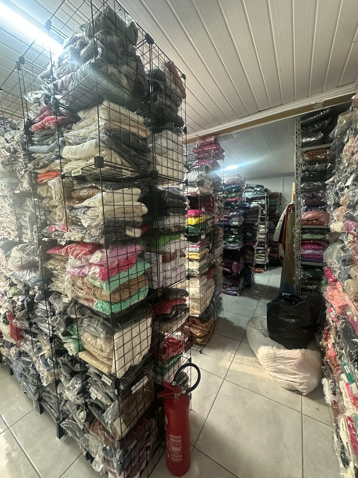 Estrutura física completa: loja montada, estúdio de fotografia, araras, prateleiras e ar-condicionado